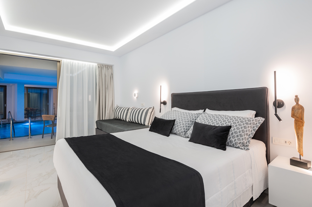 Large sliding doors open straight to your private terrace, where you can step into the pool within seconds.